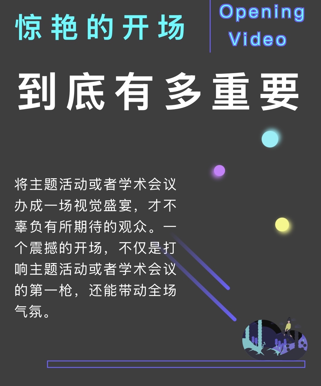 它是一种仪式感,所有人的目光、注意力都将向舞台聚拢,正式进入主题。