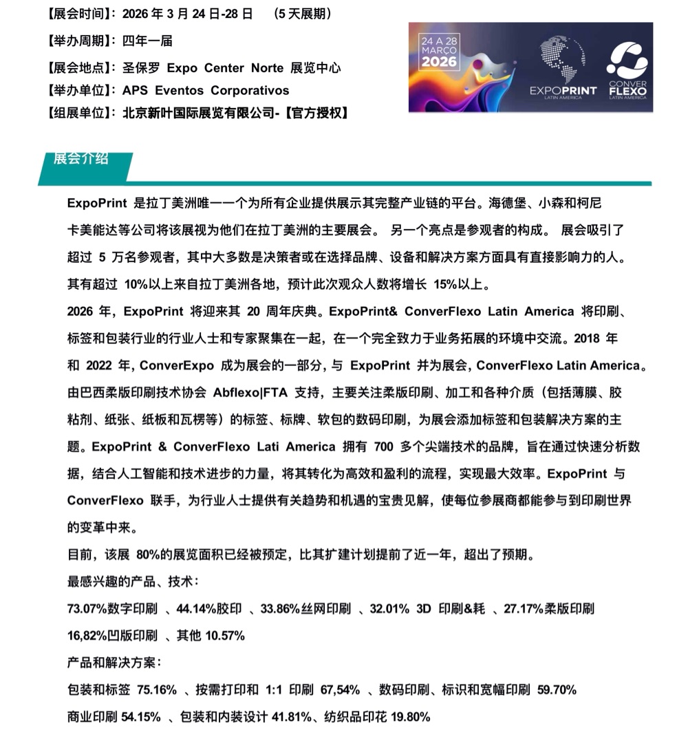 2026年巴西国际包装印刷展览会(四年一届)