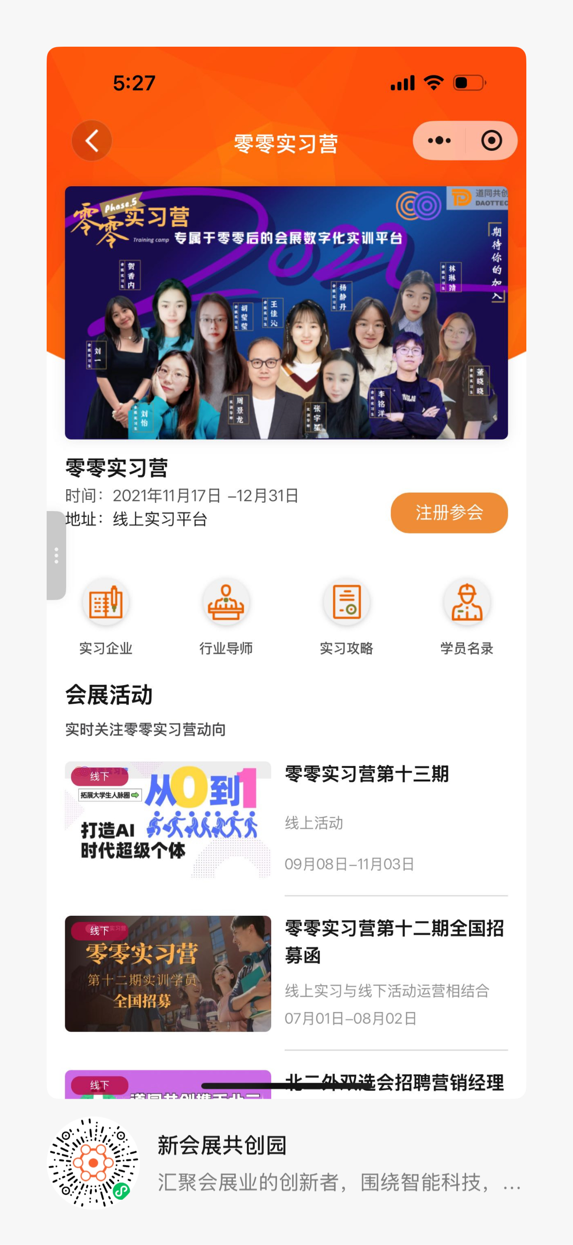 “在新会展共创园,零零实习营,有60多家的共创企业。大家可以体验一下装修公司干一个月,展馆干一个月,主办干一个月,可以接触到实际项目。”